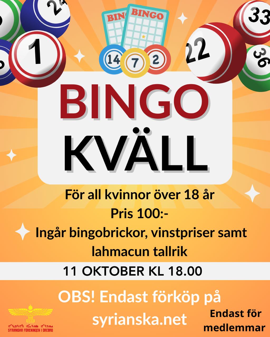 Varmt välkommen till en trevlig kväll med bingo, gemenskap och god mat!